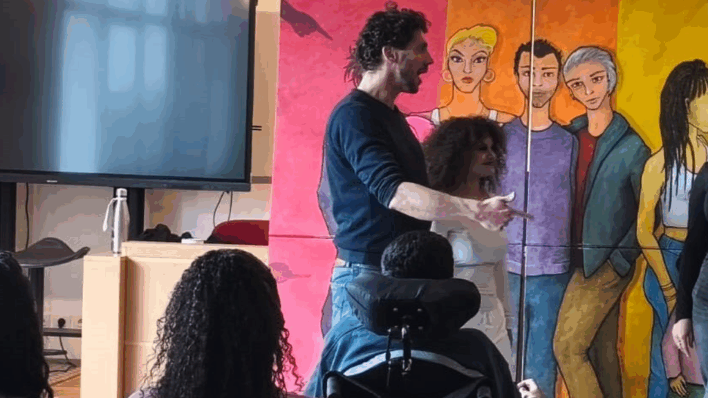 Le groupe s’est montré quelque peu timide au début pour jouer les saynètes, encadré par nos comédiens Ludovic, Johan et Anita. Ce sont les jeunes adolescentes, qui comme souvent, se sont montré les plus courageuses, ont ouvert la voie et apporté le petit « plus » féminin dans les sketches.