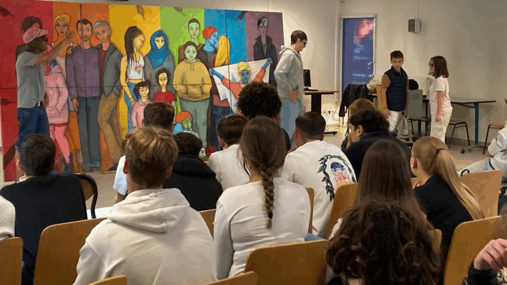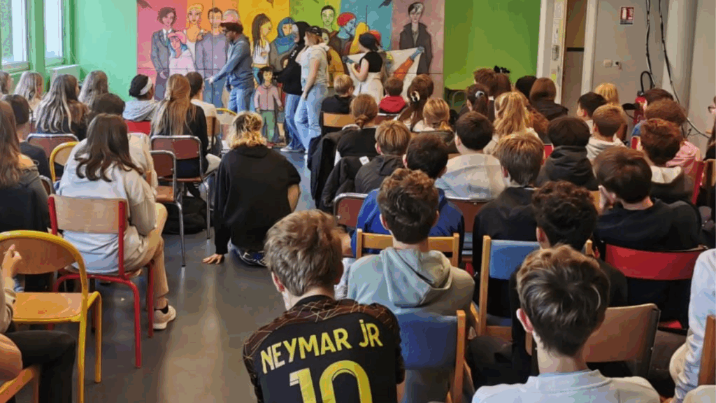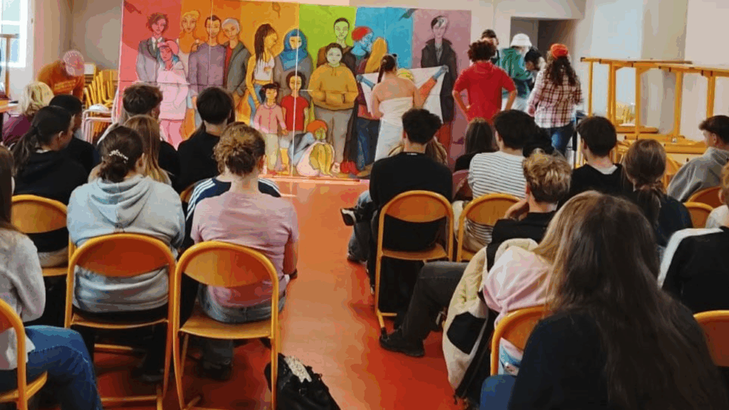C’est à l’A.S. Valognes Football avec ses jeunes sportives et sportifs que la saison avec la Fédération Française de Football débute. Majoritairement composé de filles, ce groupe s’est imposé dans l’espace scénique par son humour et sa maturité, accompagné par nos comédiens et comédiennes Candice, Flore, Clément et Christophe. Une bonne écoute et de la bienveillance ont accompagnés les débats et échanges, ce qui est toujours positif. Bravo à toutes et à tous, et aux éducateurs présents. Merci aussi à Pascale Evain pour l’organisation de cette action. Nos Partenaires :