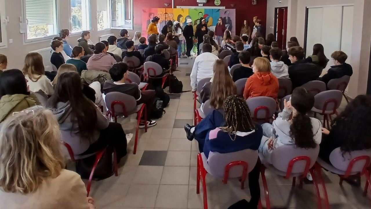 C’est à Lamastre au Collège Charles de Foucauld que nous avons joué « Nous Sommes Tous… »