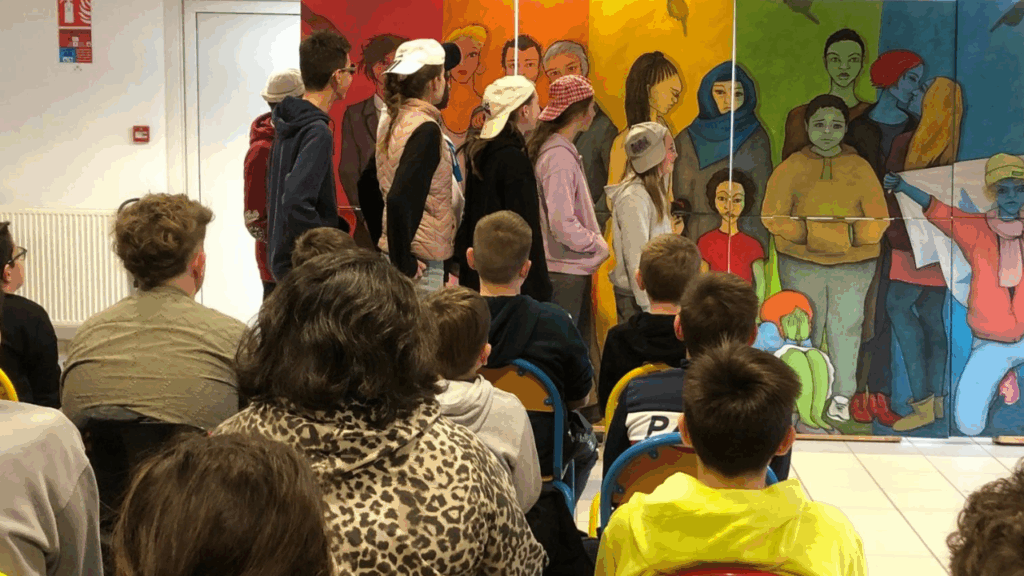 Nous voici à Lamastre en Ardèche, avec le Collège Charles de Foucauld pour jouer avec les jeunes « Nous Sommes Tous… »