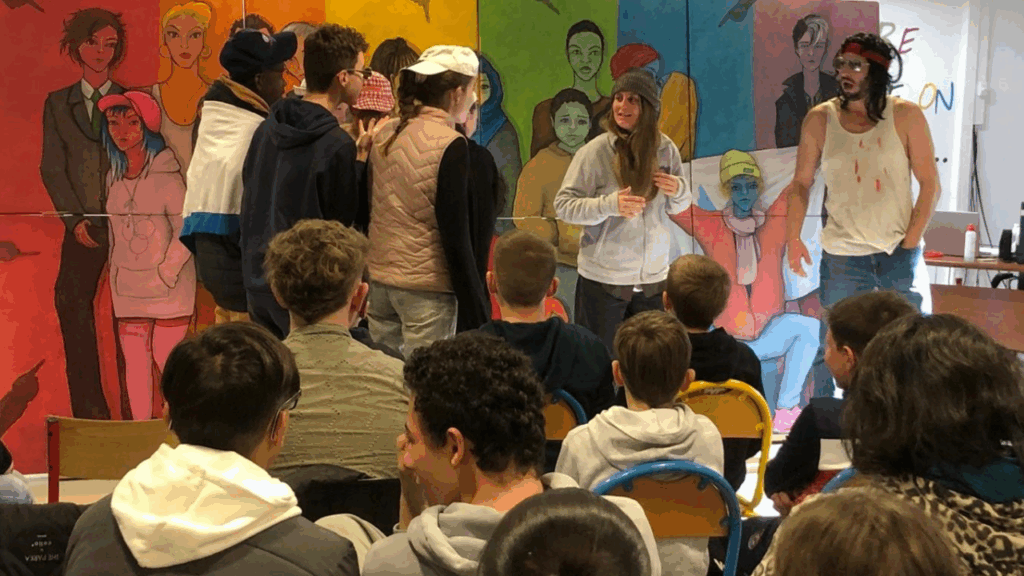 Malgré le sujet grave des discriminations, le groupe s’est montré drôle et très vivant, accompagné de nos comédien.ne.s Flore, Clément et Christophe.