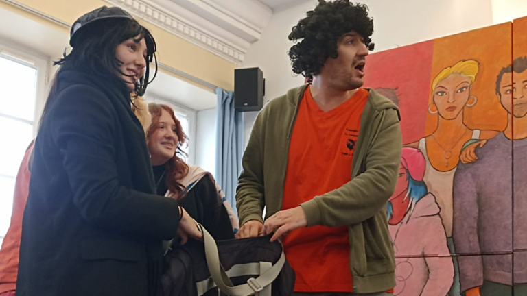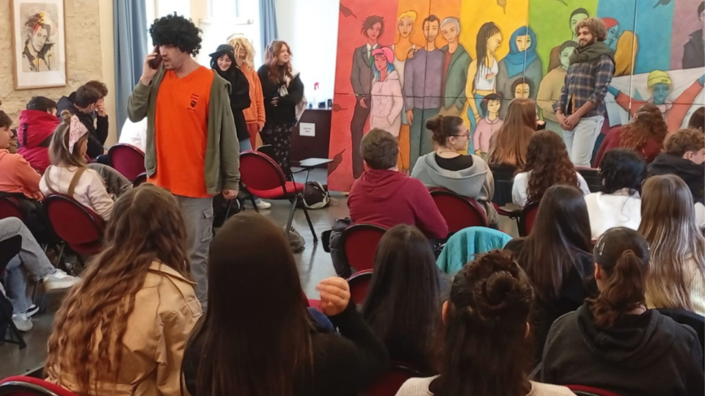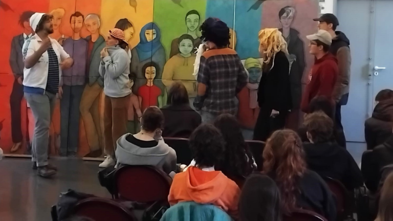 Le groupe avait une bonne énergie et une vraie envie de participer aux saynètes ; ils ont été nombreux a apporté un humour bien senti dans l’espace scénique, accompagné de nos artistes Flore, Yoann et Antonin.