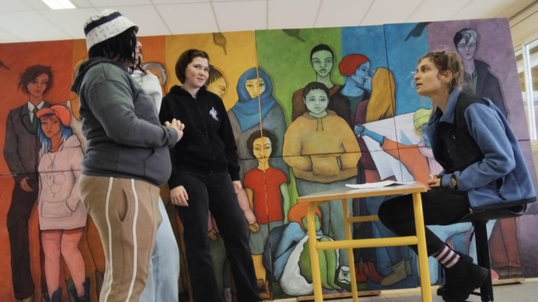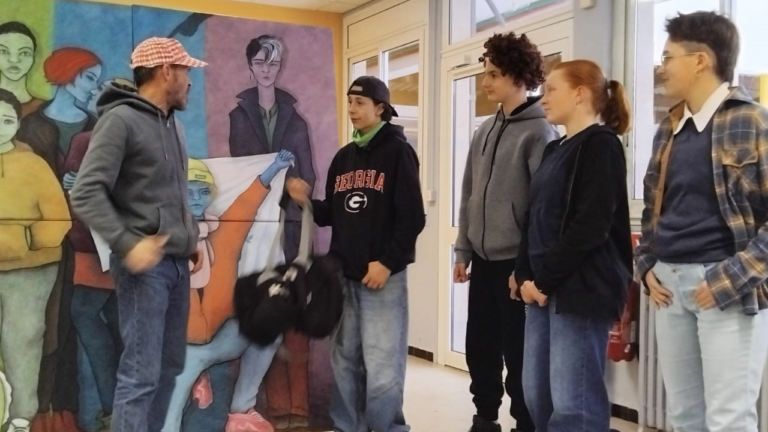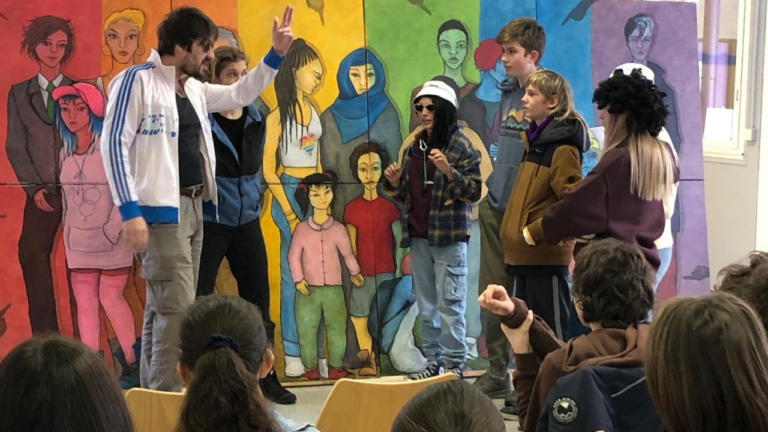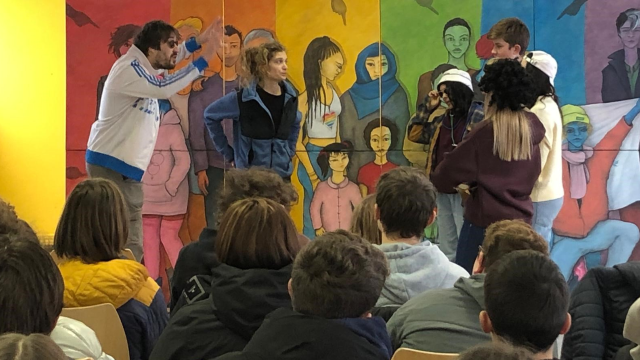 Anita, Christophe et Antonin, nos comédien.ne.s ont joué avec un groupe qui voulait participer dans son ensemble (ou presque!) aux saynètes. La motivation était cent pour cent présente pour ces jeunes.