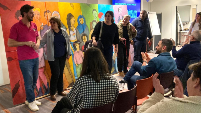 Les référents des Ligues de Handball étaient présents et ont joué le jeu des saynètes avec nos comédin.ne.s Flore, Anouk et Clément. Beaucoup d’humour de la part des référents dans ces sketches, avec toujours à l’esprit la raison d’être de cette intervention.