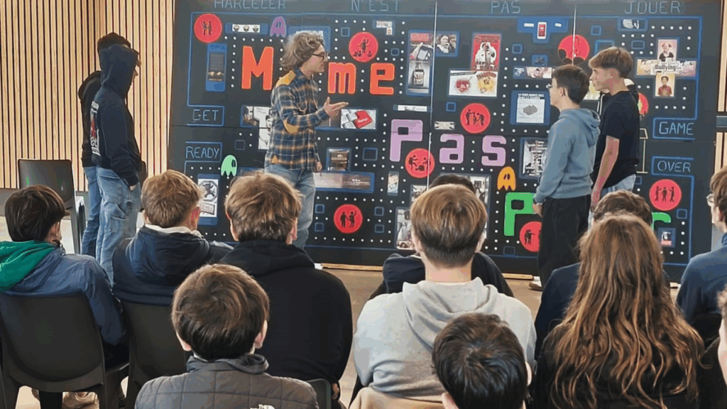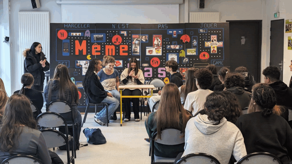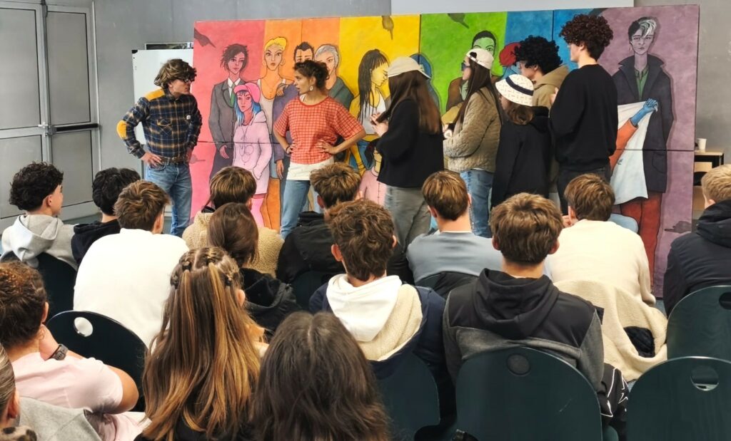 Nous voici à Lamastre en Ardèche, au Collège Charles de Foucauld pour jouer avec les jeunes « Nous Sommes Tous… » Malgré le sujet grave des discriminations, le groupe s’est montré drôle et très vivant, accompagné de nos comédien.ne.s Flore, Clément et Christophe. Les débats nous ont épatés par la culture et la richesse des échanges, ainsi que par l’émotion suscitée par les témoignages des jeunes. Merci et bravo à tou.te.s ! Merci bien sûr aussi à Manon Maneval pour son accueil et pour l’organisation. Nos Partenaires :