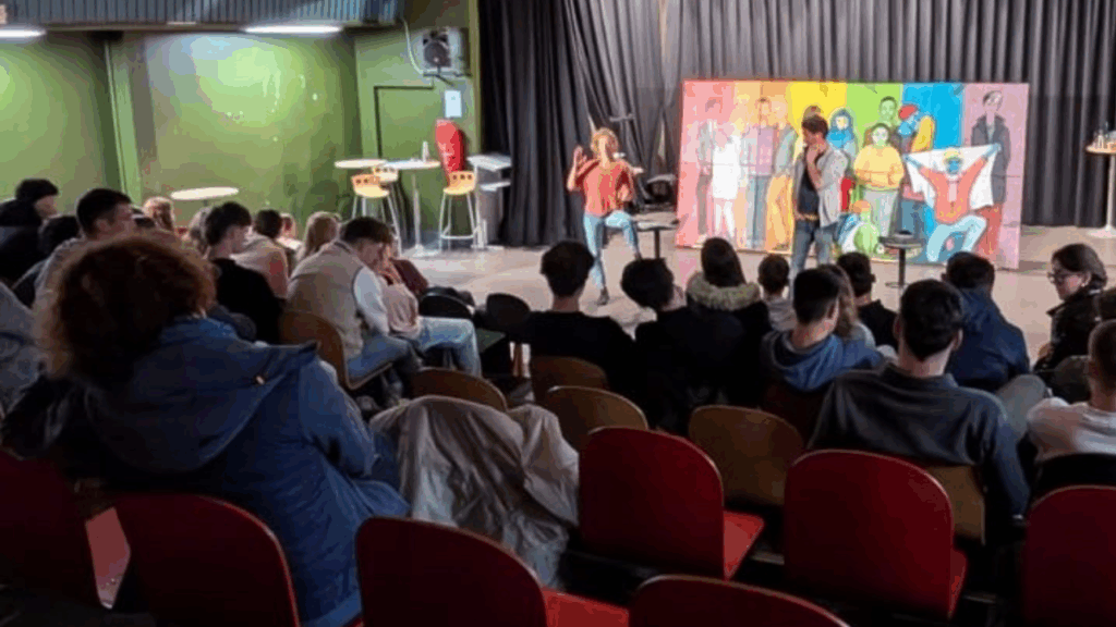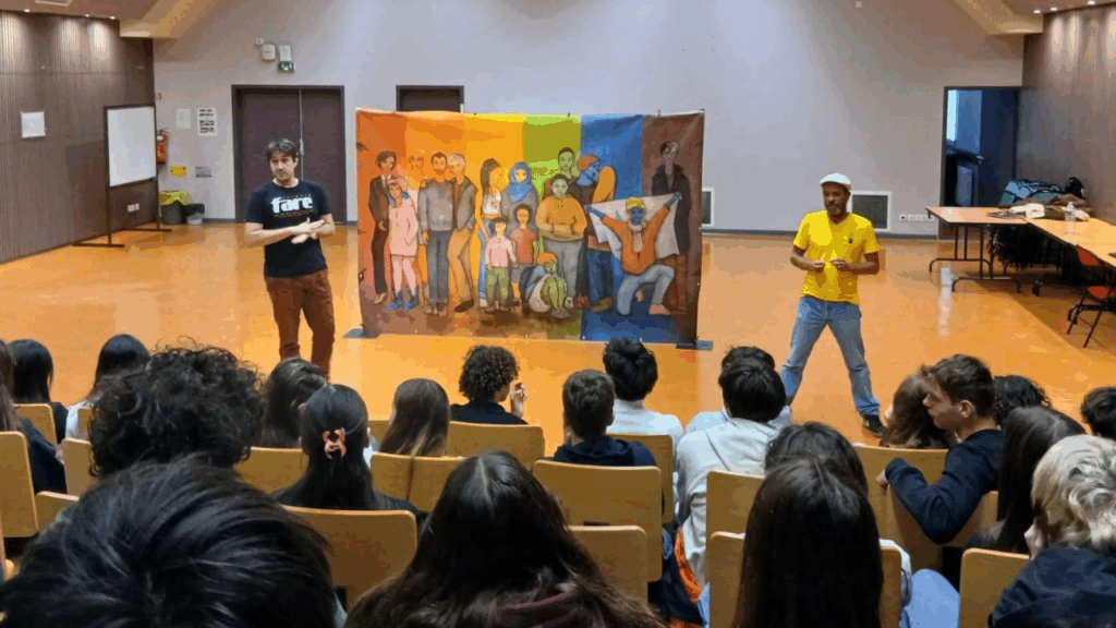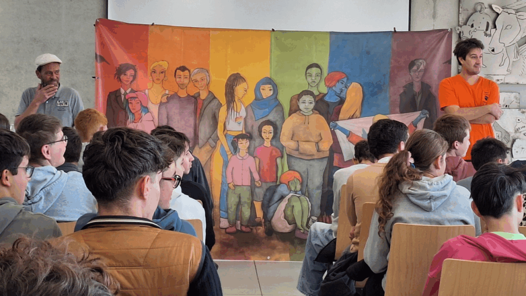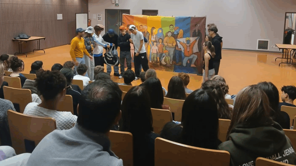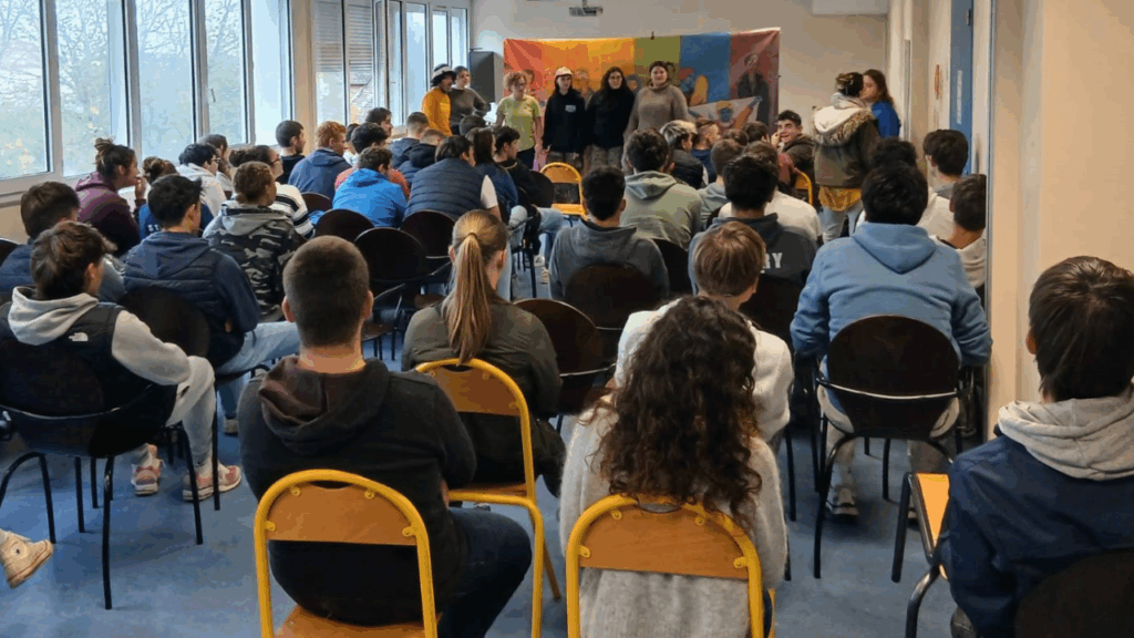 « Nous Sommes tous… » dans les Pyrénées Atlantiques avec les jeunes du Lycée Honoré Baradat à Pau. Le groupe s’est montré quelque peu timide au début pour jouer les saynètes, encadré par nos comédiens Ludovic, Johan et Anita. Ce sont les jeunes adolescentes, qui comme souvent, se sont montré les plus courageuses, ont ouvert la voie et apporté le petit « plus » féminin dans les sketches. Les échanges qui ont suivis se sont déroulés dans une belle écoute réciproque et bienveillante, même s’il y avait quelques désaccords entre certains jeunes. Merci à vous tous et toutes ! Merci aussi bien sûr à Karine Garinos pour son accueil et l’organisation. Nos Partenaires :